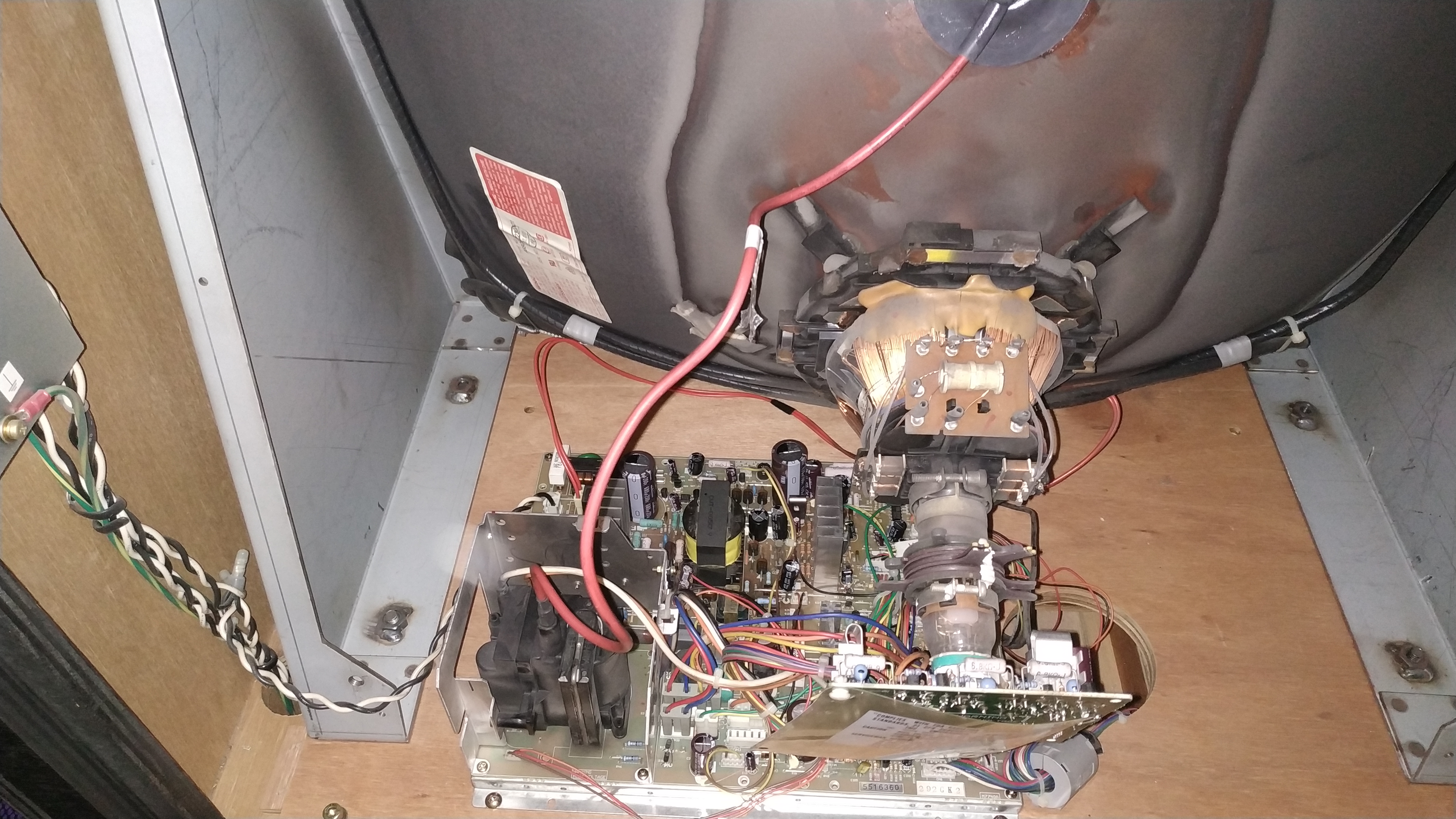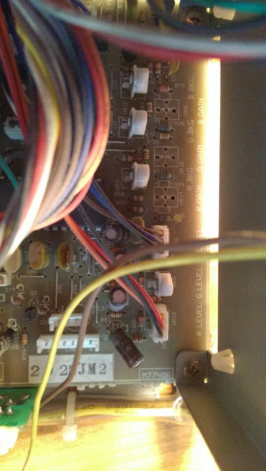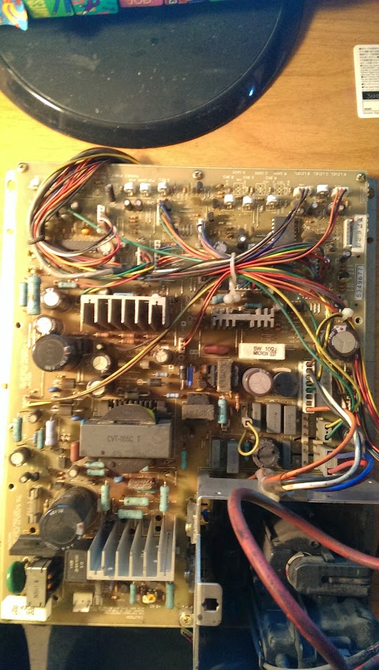 Note 1: Tthis includes a capacitor on the sub board that sometimes isn't present.Note 2: I've added cap location based on my revision which didn't have the 16V 220uF on the sub-board. However, two caps aren't listed here, mounted on a small PCB over a transistor on the right of the flyback metal shield
